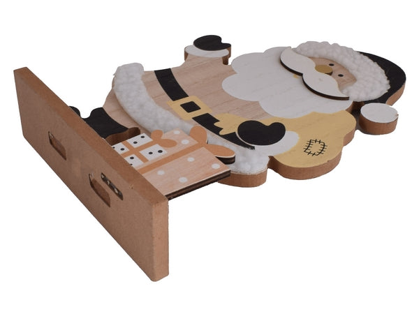 This decorative item, features a cheerful Father Christmas with his iconic suit and a sack full of gifts, bringing warmth and joy to your holiday decor. Whether you are decorating for a festive party or simply adding some seasonal spirit to your space, the Santa Decorative Stand is the perfect addition to make your Christmas merry and bright.