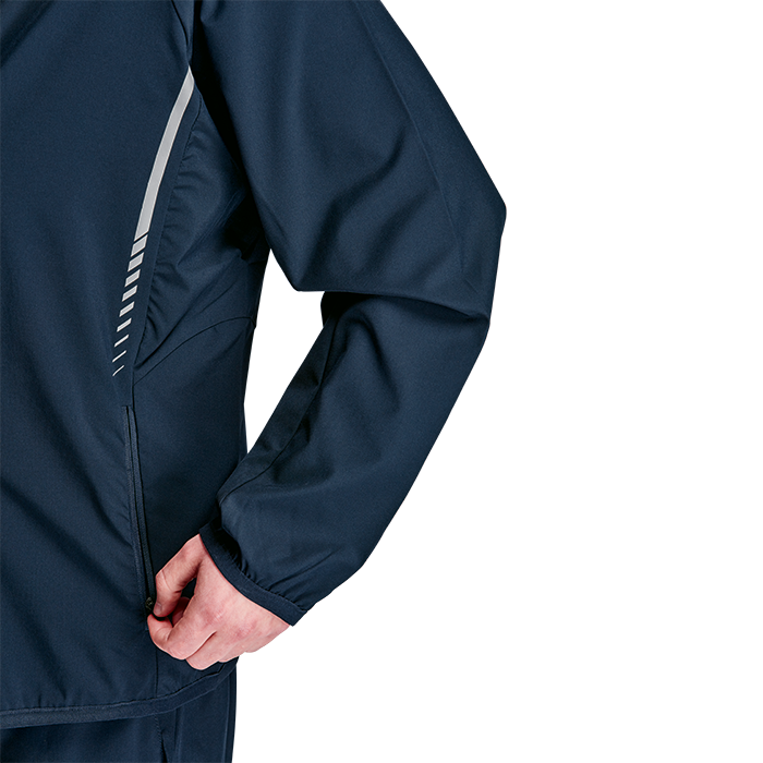 - Reflective print on jacket and pants