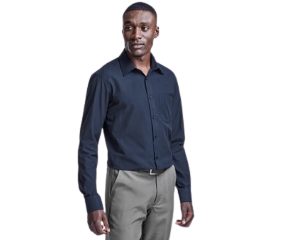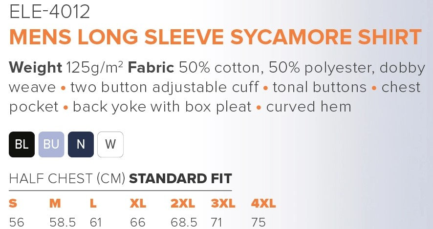 The Mens Long Sleeve Sycamore Shirt is made from cotton and polyester with a dobby weave. Features include a box pleat, hanger loop inside the neck for convenient placement when hanging up, upper patch pocket and removable collar stays to ensure your collar is always in its best shape. Standard fit.