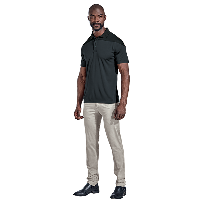 - 140g 100% Polyester piqué knit with moisture management: e-Dri