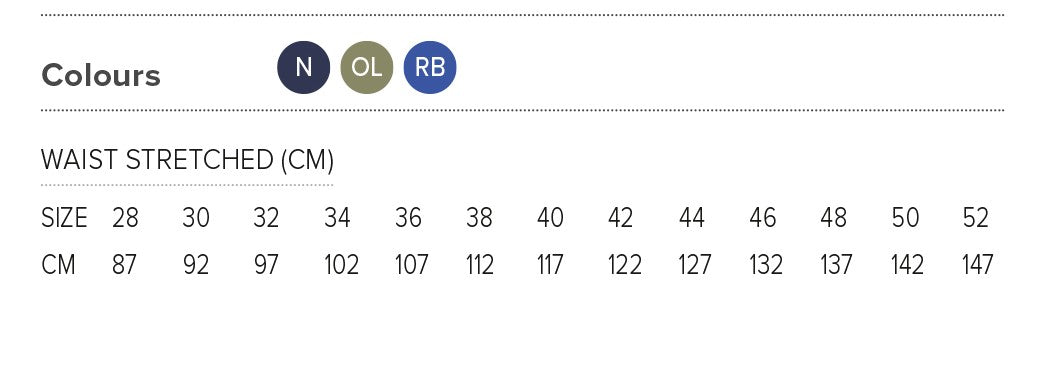 - elasticated back waist • five belt loops • two slanted front pockets