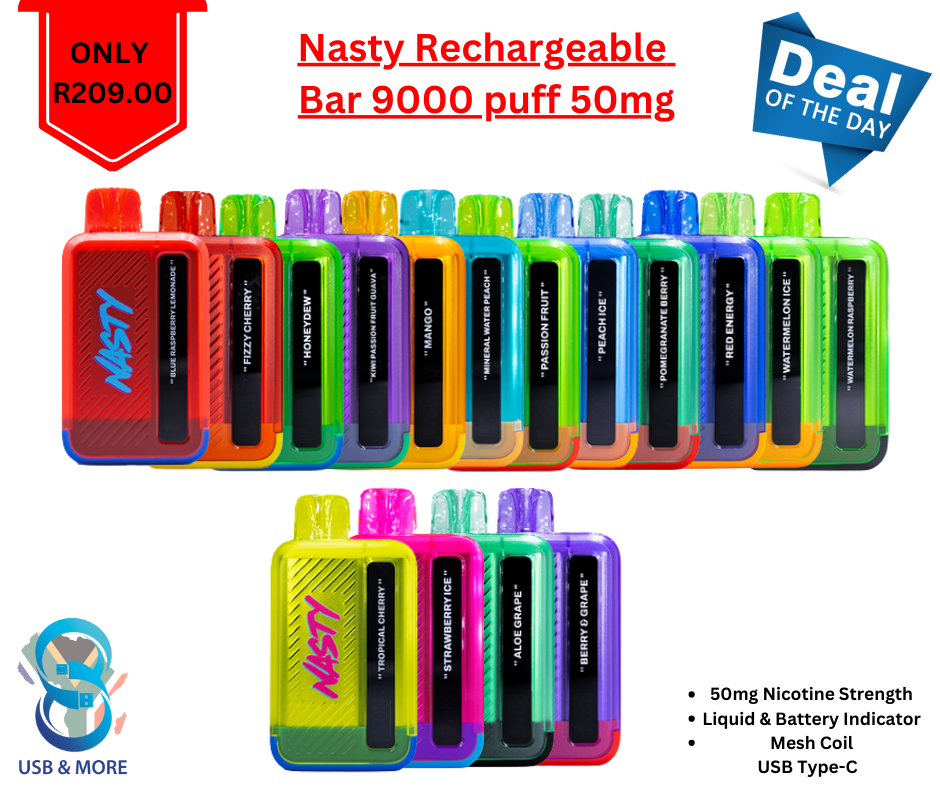 Unleash the power of Nasty Rechargeable Bar - packing a whopping 9000 puffs and 50mg of pure potency! Never run out of juice on-the-go again!