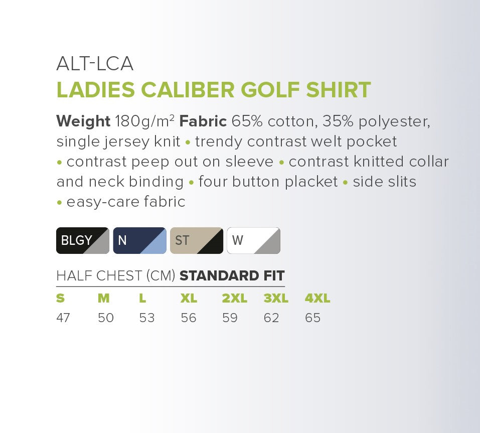 Our Ladies Caliber Golf Shirt is a cut above the rest! Crafted from breathable fabric, it'll keep you cool and comfortable out on the course. Its sporty style and classic fit will have you looking and feeling like the leader of the pack!