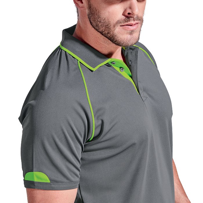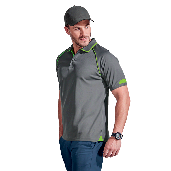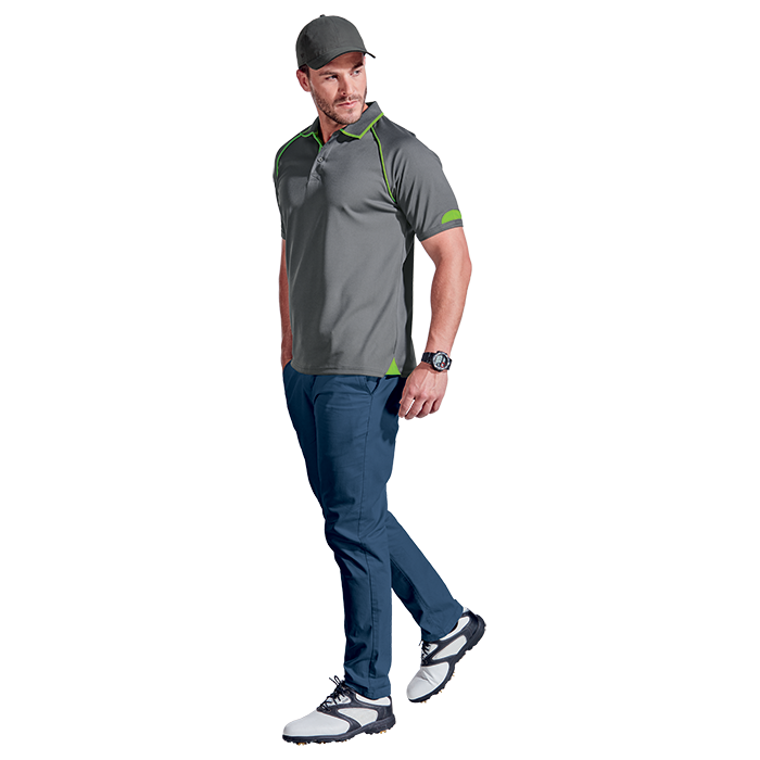 The Mens Felton Golfer is made from 170g 100% Polyester moisture management e-Dri. The features include contrast insert on sleeves and hem, easy-care garment, panel design golfer, raglan styling and contrast piping, self-fabric binding on the cuffs, three-button placket with tonal buttons, contrast neck yoke and knitted collar with contrast tipping, supplied with loose pocket. Available in various colors.