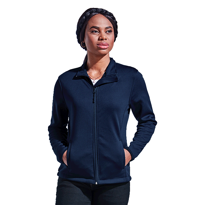 The Ladies Canyon Jacket is a comfortable and casual everyday jacket, that can be worn with jeans or smart pants for a more upmarket look. Made from 215g 100% polyester bonded fabric, the jacket has elasticated binding on the sleeve opening, front shaped panels with welt pockets, an inner storm flap, center front inverted nylon full zip opening and bar tacks on the pockets for added durability. Available in plain colors. Regular fit.