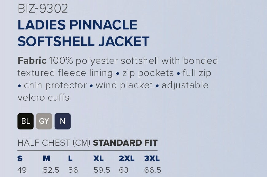 The Ladies Pinnacle Softshell Jacket is made from 100% polyester softshell with bonded textured fleece lining. The features of this jacket include a chin protector, wind placket, adjustable velcro cuffs, a full front zipper and two front zip pockets. Available in multiple sizes with a standard fitting.