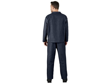 The Vintage 100% Cotton Denim Conti Suit gives you a more upmarket conti suit while still protecting yourself and your clothes from dust and dirt while you’re working. Made from 10oz 100% cotton, this extremely breathable and hypoallergenic protective work wear item is a two-piece matching suit that’s great for any work industry. Features include a jacket with an open neck collar, front yoke pane, concealed zip, Monza style chest pocket and two side pockets and pants with an elasticated back waist, five belt loops, two front slanted pockets and a back pocket. Manufactured in South Africa. Available in denim blue.