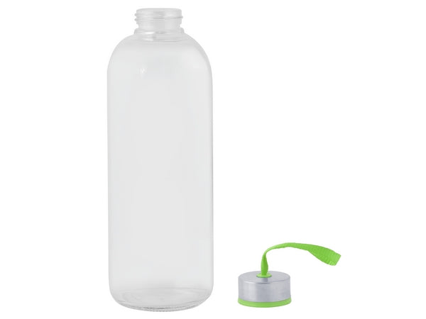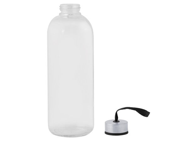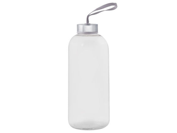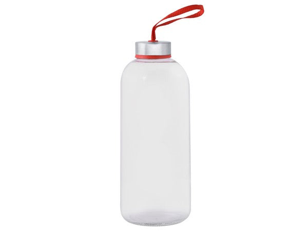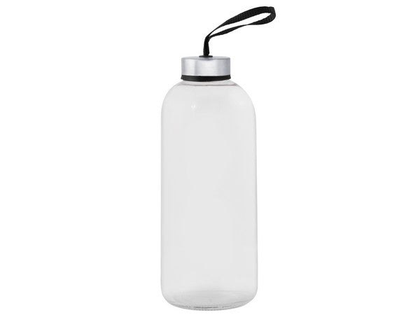 Stay hydated with the 1 Litre glass bottle, featuring a stainless-steel, leak-proof lid for insulation with black carrying cord, for on-the-go refreshment