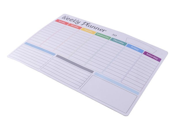 Organise your time with clarity and style using the Weekly Planner, the perfect tool to capture all your appointments, goals, and to-dos in one sleek, easy-to-view layout. With a strong, non-slip magnetic backing, which secures the planner to your fridge or other metal surfaces. With colour coded days, and a marker that is easy to dry & erase