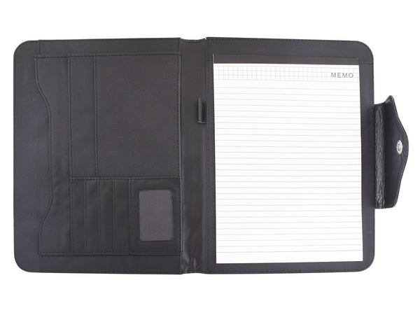 Includes 3 x Inner Sleeves, 3 x Card Holders and 1 x ID Holder. With a 20pg Lined Notepad and Pen Holder. Magnetic Clip Closure