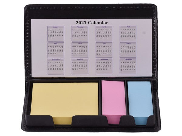 Introducing our stylish Mini Sticky-Memo Pad & Calendar - the perfect accessory to help you stay organized. With its compact size, you can easily carry it with you anywhere. Keep track of important dates while also jotting down notes on the sticky-memo pad. Stay ahead of the game with this luxurious and functional product.
