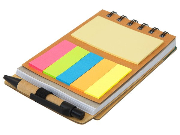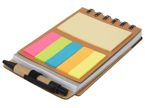 Recycled Pen & Recycle Notepad. With 80 Sheets (160 lined pages) and 6 x Sticky Memo Pads