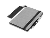 The grey cover of this notebook provides a great space for your logo or message, which should ideally match with the color of the elasticated closure, pen loop, page edges and bookmark.