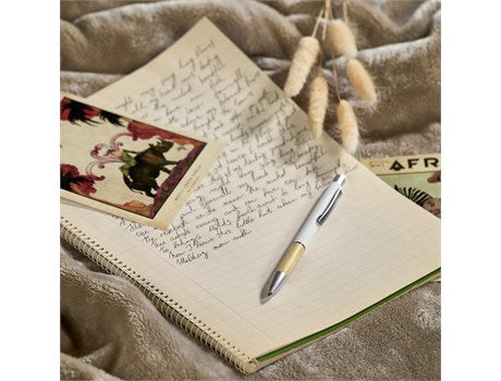 Experience a writing experience like no other with the Okiyo Yashi Stylus Ball Pen! Featuring a luxuriously natural bamboo grip, an aluminium body, and a stylus pen top, this pen offers a smooth and effortless writing experience with black German ink that lasts for up to 1500 metres. Capture your thoughts in a way that feels truly natural!