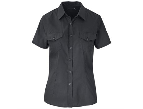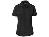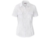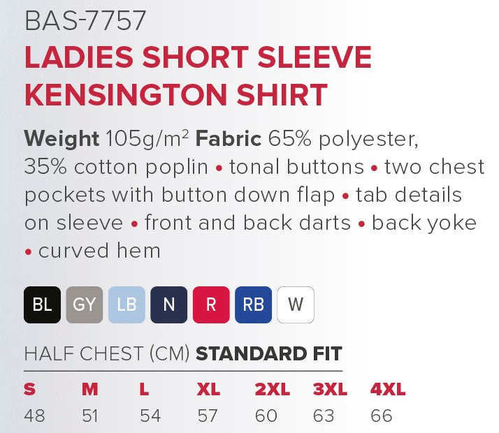 The Ladies Short Sleeve Kensington Shirt is a 65% polyester, 35% cotton poplin short sleeve shirt. Features include a full-length button-up placket, collar and a pocket on the left chest and right chest, each with a button closure. Available in neutral colors. Standard fit.