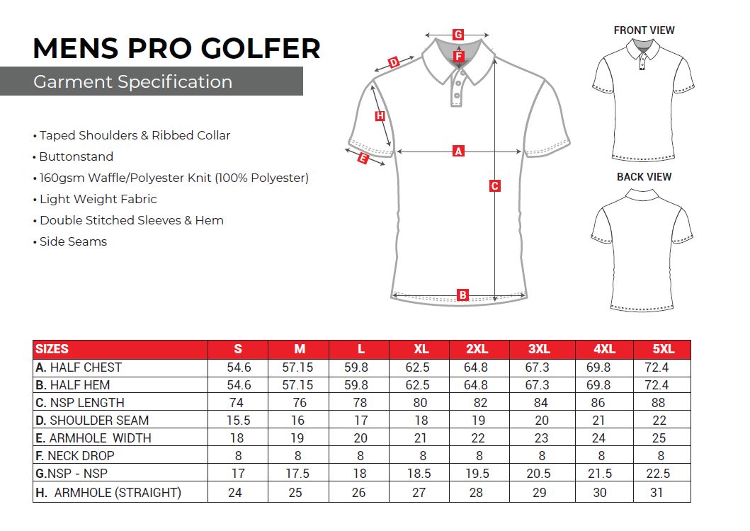 The Mens Pro Golfer is a 160gsm polyester waffle knit short sleeve golf shirt, giving you style and comfort for days in the office or when seeing clients. Features include taped shoulder for a better fit, ribbed collar, double stitched sleeves and hem and side seams. Available in plain colors