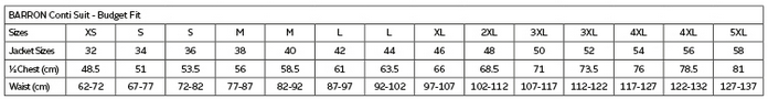 The Barron Budget Poly Cotton Conti Suit is a blended poly cotton twill fabric set that contains a long sleeve jacket and pants. Features include concealed metallic zips, two side pockets, a Monza chest pocket with top stitching throughout for added durability. While the long pants has a 1/2 elasticated waistband, two side pockets, a back pocket and has triple stitching along the legs, back and front rise.