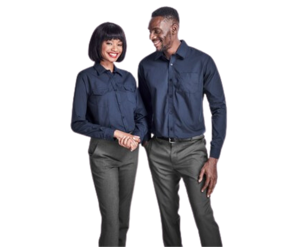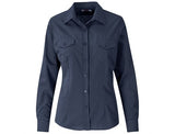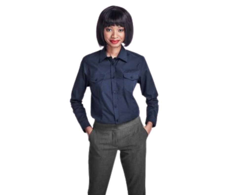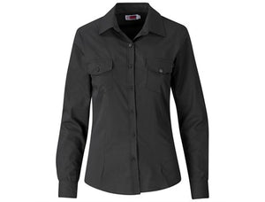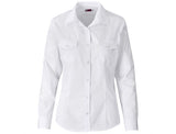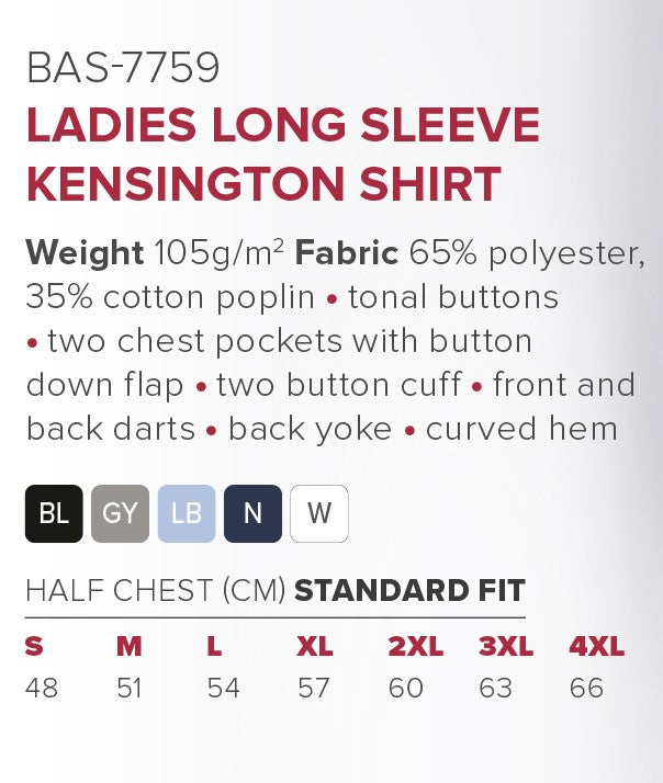 The Ladies Long Sleeve Kensington Shirt is a 65% polyester, 35% cotton poplin long sleeve shirt. Features include a full-length button-up placket, collar and a pocket on the left and right chest, both with button closure. Available in neutral colors. Standard fit.