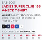 The Ladies Super Club 165 V-Neck T-Shirt is the perfect summer day wardrobe outfit if you’re looking for something different to the regular round neck. Made from 165g/m 100% cotton in a single jersey knit, the short sleeve t-shirt has a ribbed v-neck collar. A great feature is the tearaway labels inside the t-shirt that allows you customize your shirt even further by adding an inside neck print! Standard fit. Available in plain colors.