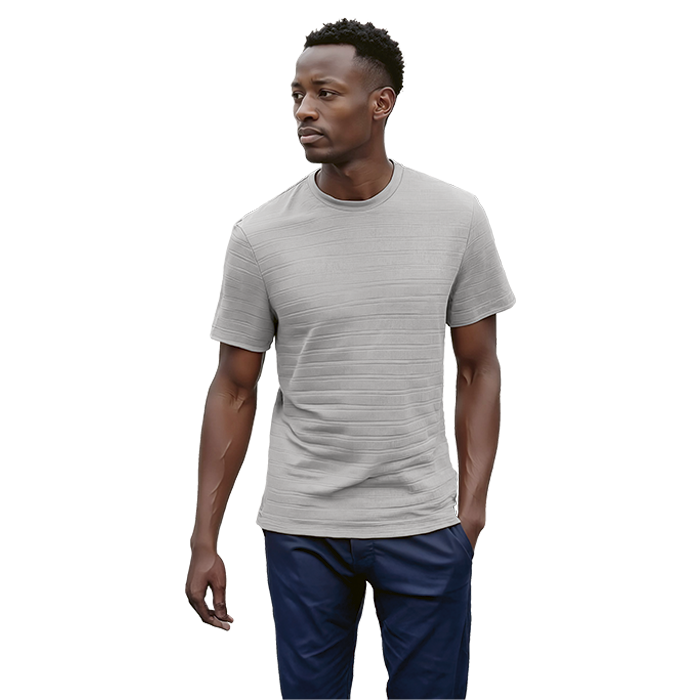 This 170g Pique Knit Jacquard Stripe T-Shirt is a comfortable, lightweight, casual t-shirt. Made from 170g 100% cotton, the short-sleeved shirt has side slits with inner contrast color twill tape, a crew neckline with rib, back neck buggy detail and a jacquard stripe surface pattern. Available in a range of plain colors.-