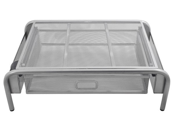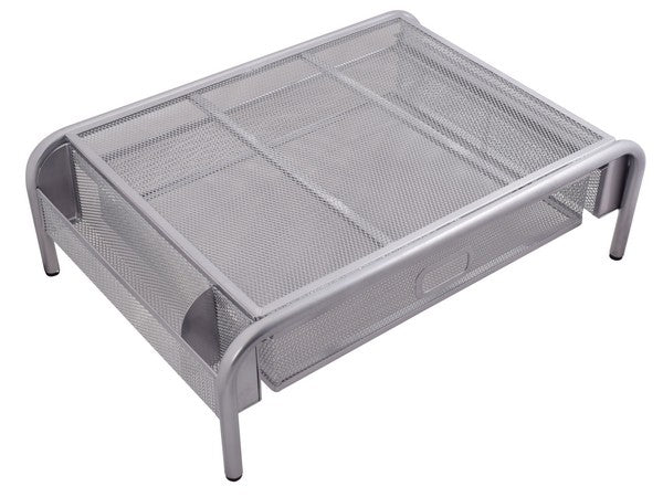 Raise your monitor to the correct height for ergonomic relief from neck strain. With pull out drawer underneath and shelf storage on both sides to reduce clutter on your desk. With rubber stoppers under each leg for stability. Mesh wirefeame offers increased cooling and airflow for your laptop or computer. Strong, stable and lightweight