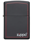 This black matte windproof lighter with red border is adorned with the classic Zippo logo. Comes packaged in a gift box. For optimal performance fill with Zippo lighter fuel.