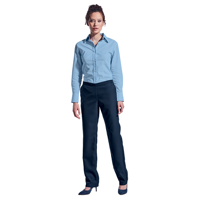 The Ladies Amber Pants is a great corporate wardrobe must-have, dress it up with heels or a comfortable pair of flats for a polished look at work. Made from 175g 100% polyester, the classic pull on styling long pants has a constructed front waistband, elasticated back waistband and front slanted pocket. Made in South Africa. Available in formal colors. Regular fit.