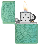 This dazzling Armor® High Polish Green lighter features the ridges and heights of a topographical map in a delightfully textured Deep Carve design. Comes packaged in a gift box. For optimal performance, fill with Zippo lighter fuel.
