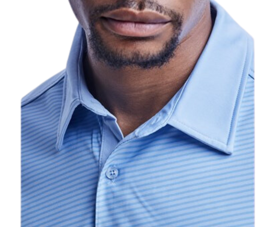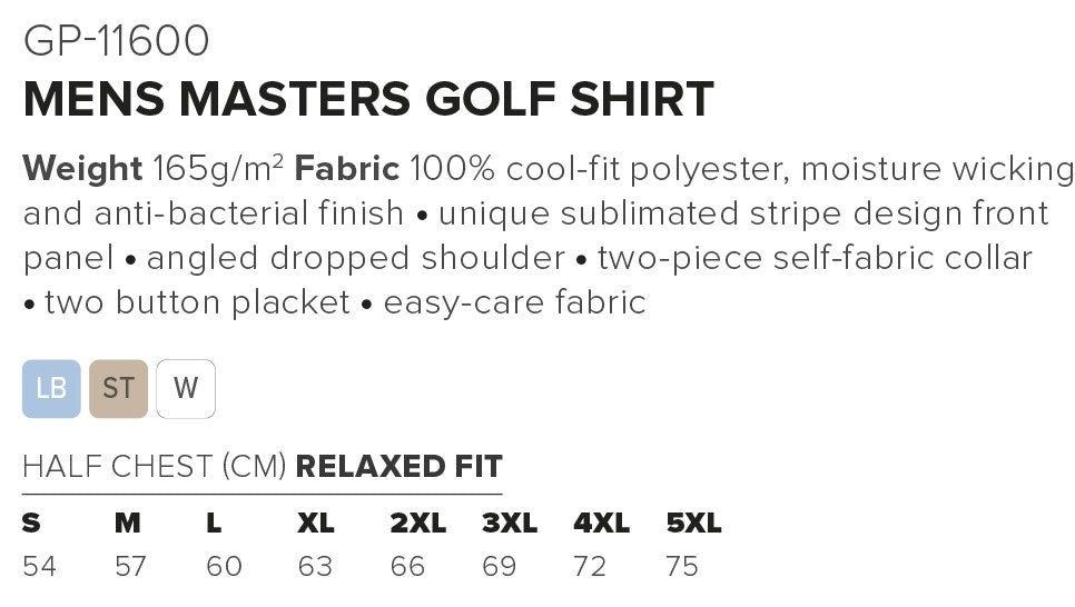The Mens Masters Golf Shirt is made from 165g/m2 100% polyester fabric designed to keep odor and heat out thanks to its moisture-wicking and anti-bacterial finish, making it an excellent choice to wear in the summer! Features include an angled dropped shoulder, a two-piece self-fabric collar and a two-button placket. Available in light shades with a unique sublimated stripe design front panel to give you a stylish edge! Part of the Gary Player collection and has a black knight embroidered logo on the back neck yoke. Relaxed fit.