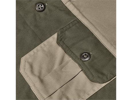 The Mens Short Sleeve Serengeti 2-Tone Bush Shirt is made from 100% brushed cotton twill. The shirt is two-tones which gives it great character so while the shirt is one color, the front and back yokes are a different contrasting color along with the pleated pockets to match. The shirt has metal buttons and a neat box pleat on the back yoke. With twin needle finishing on the seams, giving the shirt strength and durability. Great colors to match the outdoors. Standard fit.
