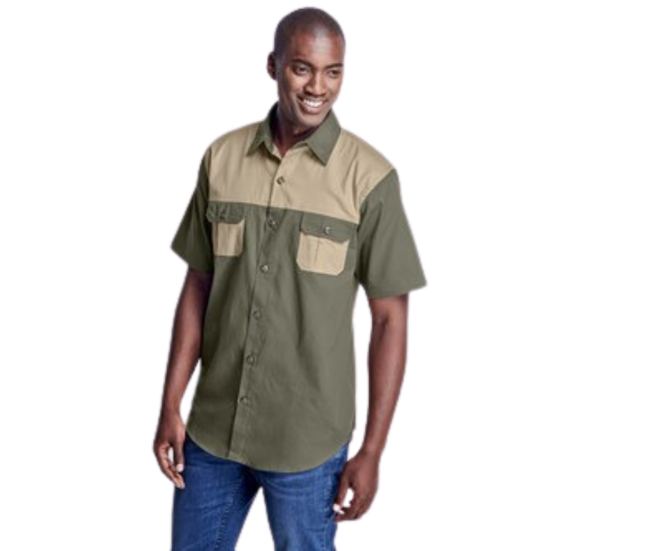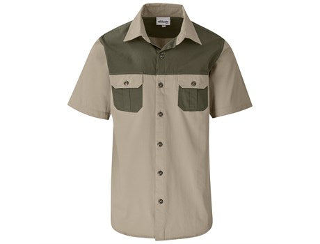 Mens Short Sleeve Serengeti 2-Tone Bush Shirt