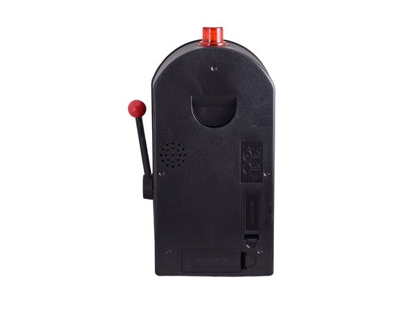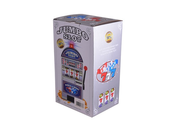 With working handle, wide spinning reels, coin slot and flashing jackpot bell with sound. Includes 2 x AA Batteries