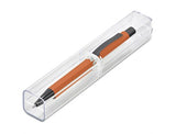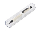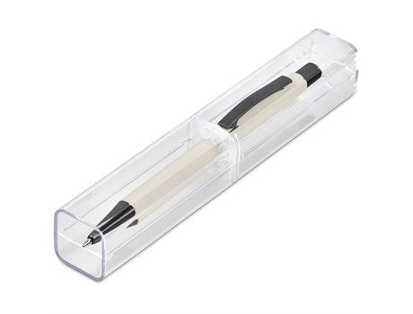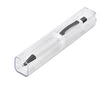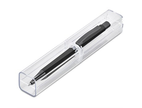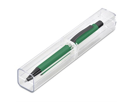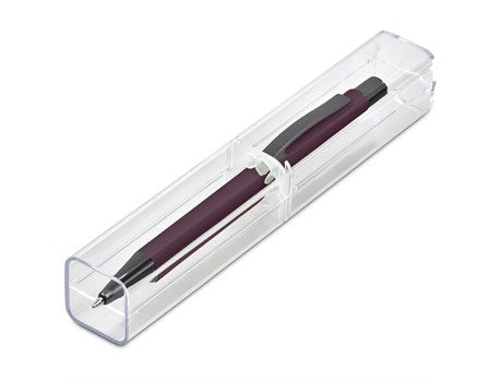 The rubberised finish of this metal pen gives it a pleasing tactile feel and an attractive appearance. Laser engraving offers a clean and precise effect which is both subtle and visible. The ball pen refill contains good quality, black German ink and will provide smooth, uninterrupted writing for a minimum of 1,500 metres. Presenting the pen in this transparent case gives it that impressive finishing touch.