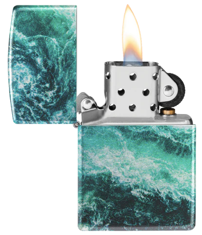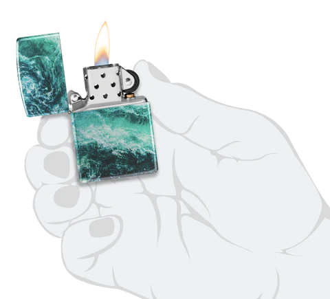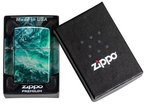 We unveiled 540 Fusion last autumn, and we’re just getting started! Rushing rapids churn around all sides of this lighter and is complemented with iridescent metallic tones, combining the hallmarks of both our 540 Color and Fusion processes. Comes packaged in a gift box. For optimal performance, fill with Zippo lighter fuel.