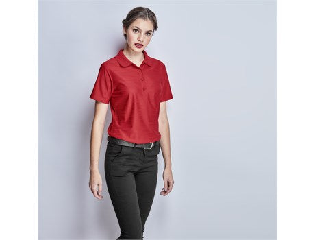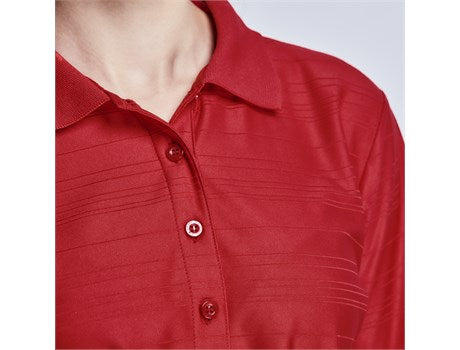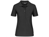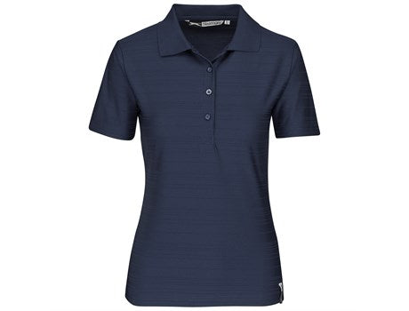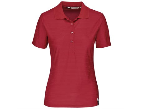 The Ladies Viceroy Golf Shirt is a 100% cool fit polyester short sleeve golf shirt in a jacquard knit. Features a rib-knit collar with self-fabric neck tape, a four-button placket, tone-on-tone logo buttons and an overall shiny finish and horizontal surface interest detail. Part of the Slazenger collection and has a Slazenger logo tab on the front bottom left of the shirt. Standard fit.