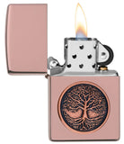 The Tree of Life serves as a reminder of our universal connection to Mother Earth, and our dependence on her to grow and flourish. This design displays the Tree of Life on an emblem attached to an elegant High Polish Rose Gold lighter. Comes packaged in a gift box. For optimum performance, fill with Zippo lighter fuel.
